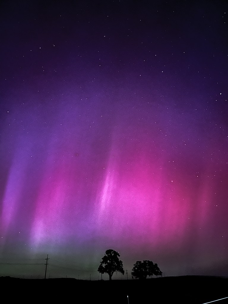 “Once I left the city lights of Stockton on my way home to Valley Springs, I noticed a red hue on the horizon that couldn’t have been from man made lights. I pulled over on Hwy 26 in a clearing in between Linden and Valley Springs and used my iPhone 14 to capture these photos. I found it interesting how my eye couldn’t really see the details that the camera was able to capture, not to mention I was pretty amazed how well the iPhone camera handled night time photography.”