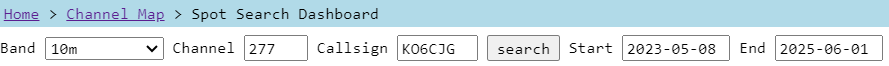 Note: The beginning date is any date just before the launch date of 2024/06/22 and the end date can be anything just after the date on which you are now checking the system. The channel number tells the system the frequency and the time slot for the transmissions.
