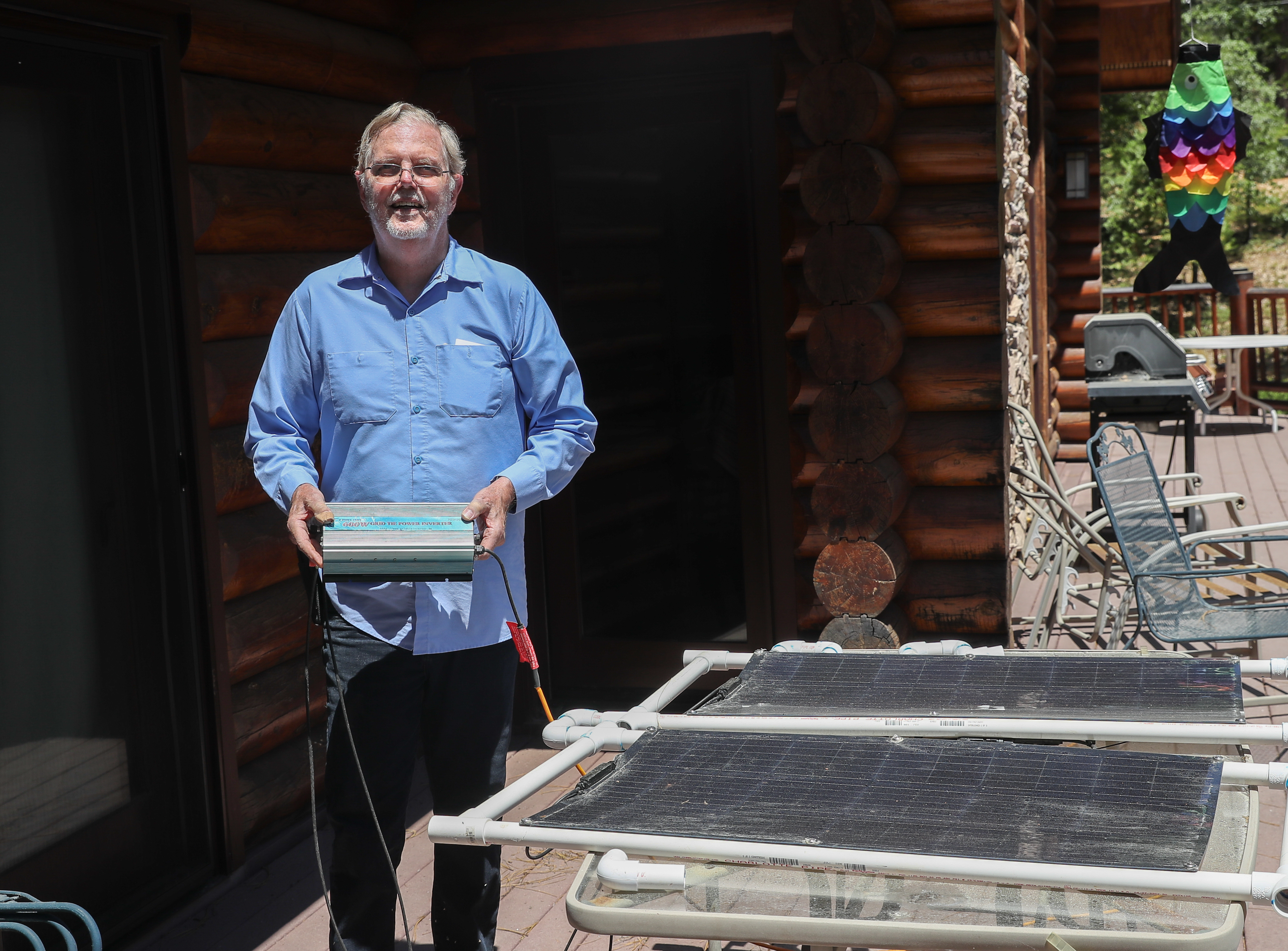 Again, nothing! He could still hear it within that relatively small area, but nothing indicated he was any closer to isolating it. As frustration began to replace confidence, he saw it! An extension cord that led to a table on his back deck. On that table lay two solar panels attached to a 600 watt power inverter. As the transistor radio screamed “Target Found”, David pulled the plug, smiled, and proudly displayed his prized trophy.
