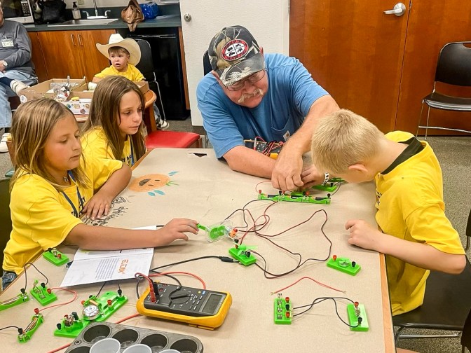 That’s Steve Jens (AKA “Lefty”) – K6CTQ sitting in a tiny chair surrounded by hungry minds at a summer camp near his home in Smith Valley, Nevada. Like other active amateur radio operators, Steve takes the time to cultivate interest in the fundamentals of his hobby. Today they’re studying the flow of electrons. Tomorrow some may be applying for their first FCC license.