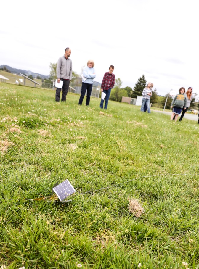 The radio beacon is sold by QRP Labs in Turkey. It transmits in the 20 meter amateur radio band with a power of only 20 mW. It is powered by solar panels assembled in a triangular pyramid so the sun is always shining on one of the panels. The weight, including antenna, is 26 grams. Its amateur radio call sign is N6FRG for the Calaveras Radio Club.